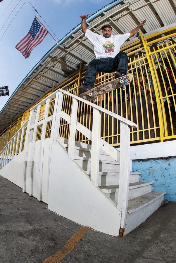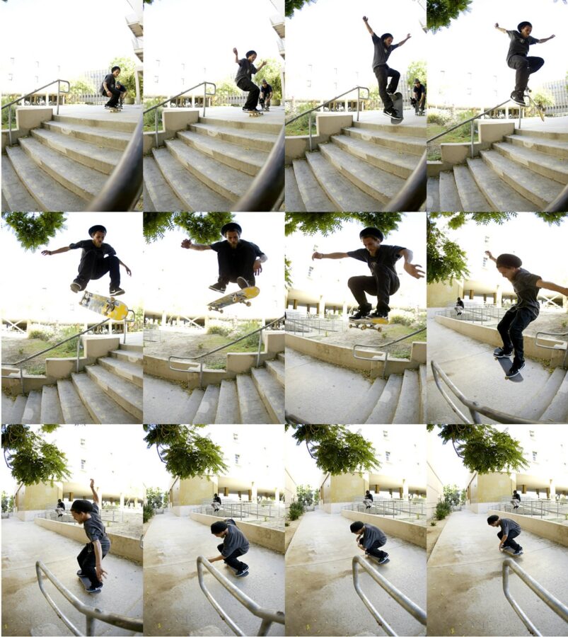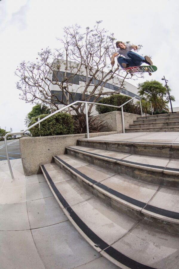 We like to do the pretty stupid question of asking photographers how many stairs have you ollied?Eight was the biggest I ever did. And then yeah, skating with Kevin Romar and Darrell Stanton, dudes that would huck, I realized I should just shoot photos of those guys. My ollie down the eight stair probably isn’t going to make our homie video because you just nollie back heeled it.