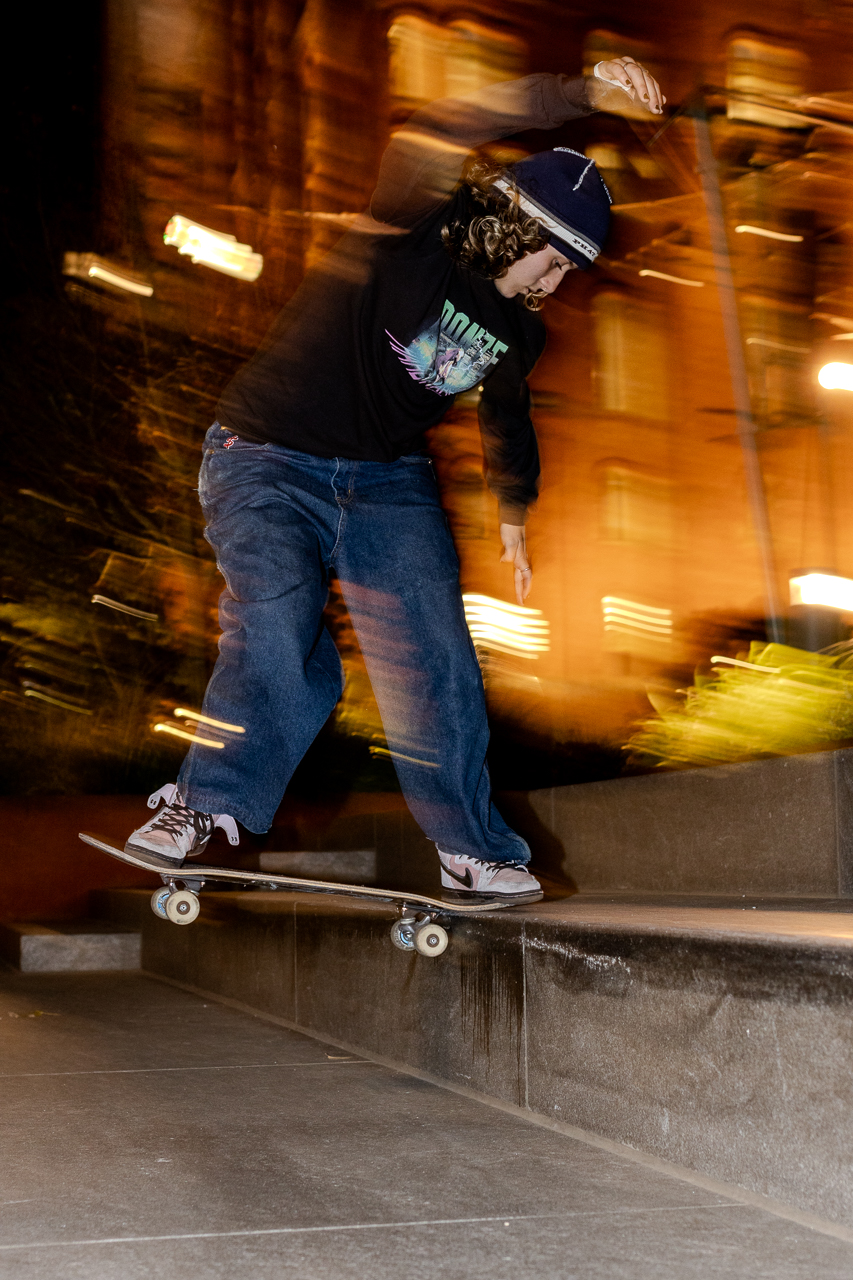 You only started skating a few years ago, what got you into it?I started skating because I really wanted to get out of my house. It was just stressful at home. And then my neighbor who I grew up with, Mathew Villamel, just started talking about skating. Like, “it’s a cool thing to do and it would be cool if we knew how to kickflip” And so we would just skate the shitty flat ground park with a playground, not even a skate park. I really loved it, I just did it every day because it was something to do. All these things I like to do, they’re super focused on self, and I feel like skating is too. You have your community, you have your friends, but, it’s about what you do, and that shows. So for me it was nice because I could just keep working on it and working on it by myself. So I’d be skating in front of my house, skating with my friends, and it just kind of went on from there. Like, sometimes I have an identity crisis honestly with it because it hasn’t even been that long. And I’m like, what happened? But for progression and stuff like that for me what’s really helped a lot is just number one – skating every day. There’s really no way around it. I do not believe in prodigies! I don’t believe I have a gift that nobody else has. I don’t believe that at all. I do believe that I really care, and I skate every day and I actually try to get better. And there’s some days I feel like shit, but I will still skate because I know that’s what it takes. Whether I’m confident or not that day I’m going to still skate, and if I have a good session or bad session doesn’t matter because I still skated. I don’t want to do something everyday that makes me sick to my stomach to try. But I do want to be a little bit uncomfortable every day with something I’m trying. It’s the journey that’s really important, because sometimes we have the end goal, but then we like to rush the process and you’re not enjoying it.