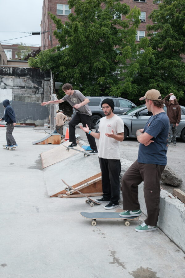 A few people started donating ramps. A quarter pipe showed up. Then a bank. Then another quarter. I built another manny pad / ledge out of trex decking. Someone brought a curb. Within a few weeks we had a complete low impact modular skatepark. It felt like Perry Park meets ‘The Courts’ or ‘Tompkins’. People started showing up every day. A solid crew of locals formed. People came after work, kids came after school. Everyone was welcomed in, even the scooters, roller skaters, bikers. Neighbors came and hung out just to watch and talk. A whole community sprung up out of nothing in a matter of weeks. It honestly felt magical, like we had stumbled into something bigger without realizing it.