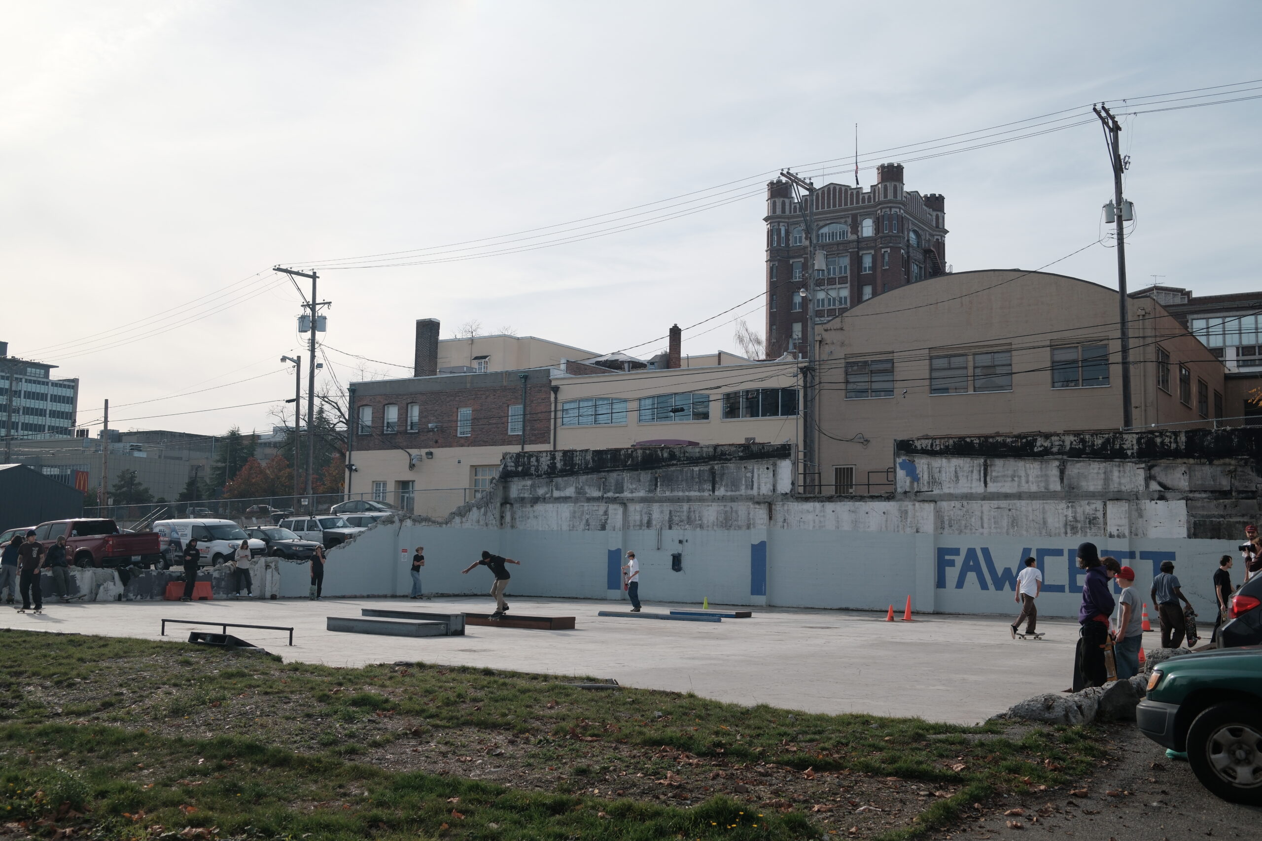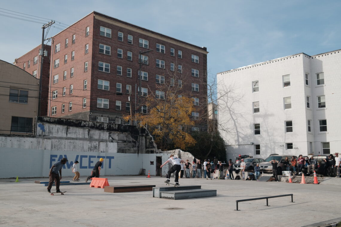 Right as we were losing the park, I had reached out to our local skate nonprofit Alchemy (who I volunteer with) to see if they would be down to help. They were only two blocks away from Fawcett, so it seemed like a perfect pairing. The board voted and said if we could raise two years of the potential costs, they would take on the project under the nonprofit including insurance, lease, maintenance, admin, etc. In my mind, that was the moment this became possible. With Alchemy willing to be the lease holder and carry the liability, all we had to do was raise enough to cover what the property owner was requesting. As soon as news spread we were getting kicked out, a few of the neighbors started emailing and calling people on our behalf, like city council, parks, the local news, the mayor, really anyone who could help. We did the same on our end. I sent endless emails, texts, calls and had lots of meetings. I brought park and city staff to see the place right before it was demo’d to show them what we had built with so little. Eventually one of the neighbors helped us land a News Tribune story, and so we launched a GoFundMe as the idea of making this legit started to feel real.