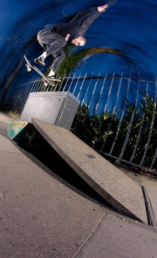 But back to London, I moved here in September 2022 to come study, and honestly, I wouldn’t change it for the world. The quality of the skateboarders, spots, and overall community is unmatched. Seeing people who I had always seen in videos is still crazy to me. Shooting photos here is incredible, having people who are down to get buck always helps. I’ve been shooting with Nick Richards and his crew for a video he’s been working on for a while now, it should have been out last year but some fool, Josh “Ranga” Harper, had to go break his ankle and postpone the whole thing, but I guess it’s just given us some extra time to film. From this crew, in particular, Jack Thompson, Cillian Fitzpatrick and Chris Oliver have been ripping as of late. I don’t know how Chris does it, he’s forty fucking four, still goes ham, like super ham, just wait for his part, it’s fucked, he’s fucked. Moving over here, it was sick to get in with this crew.