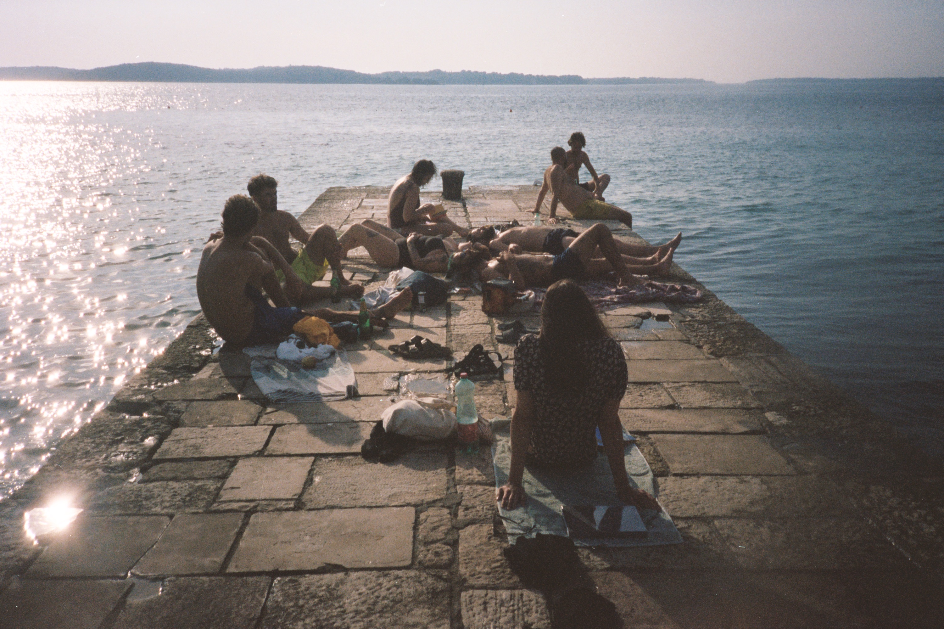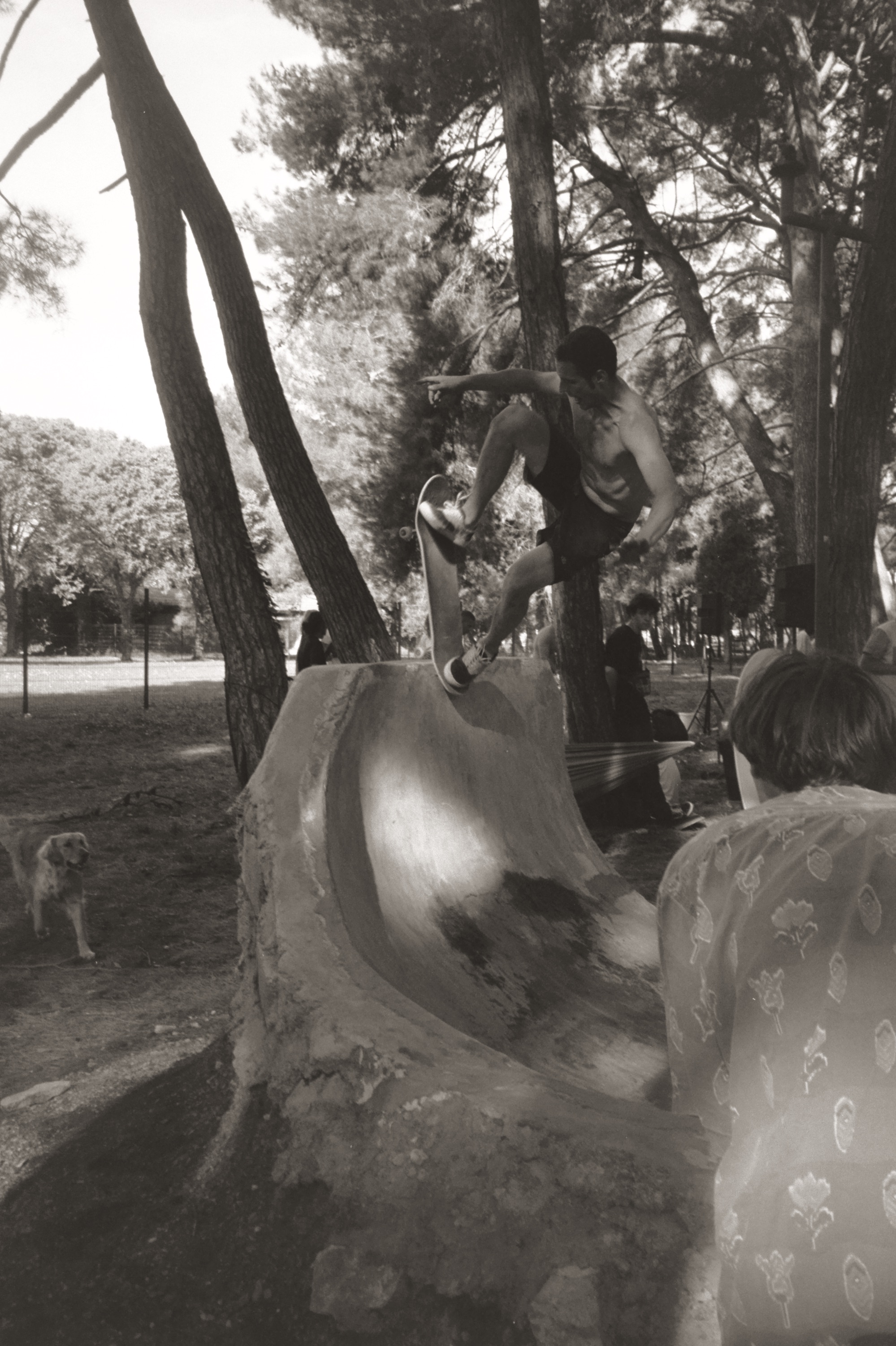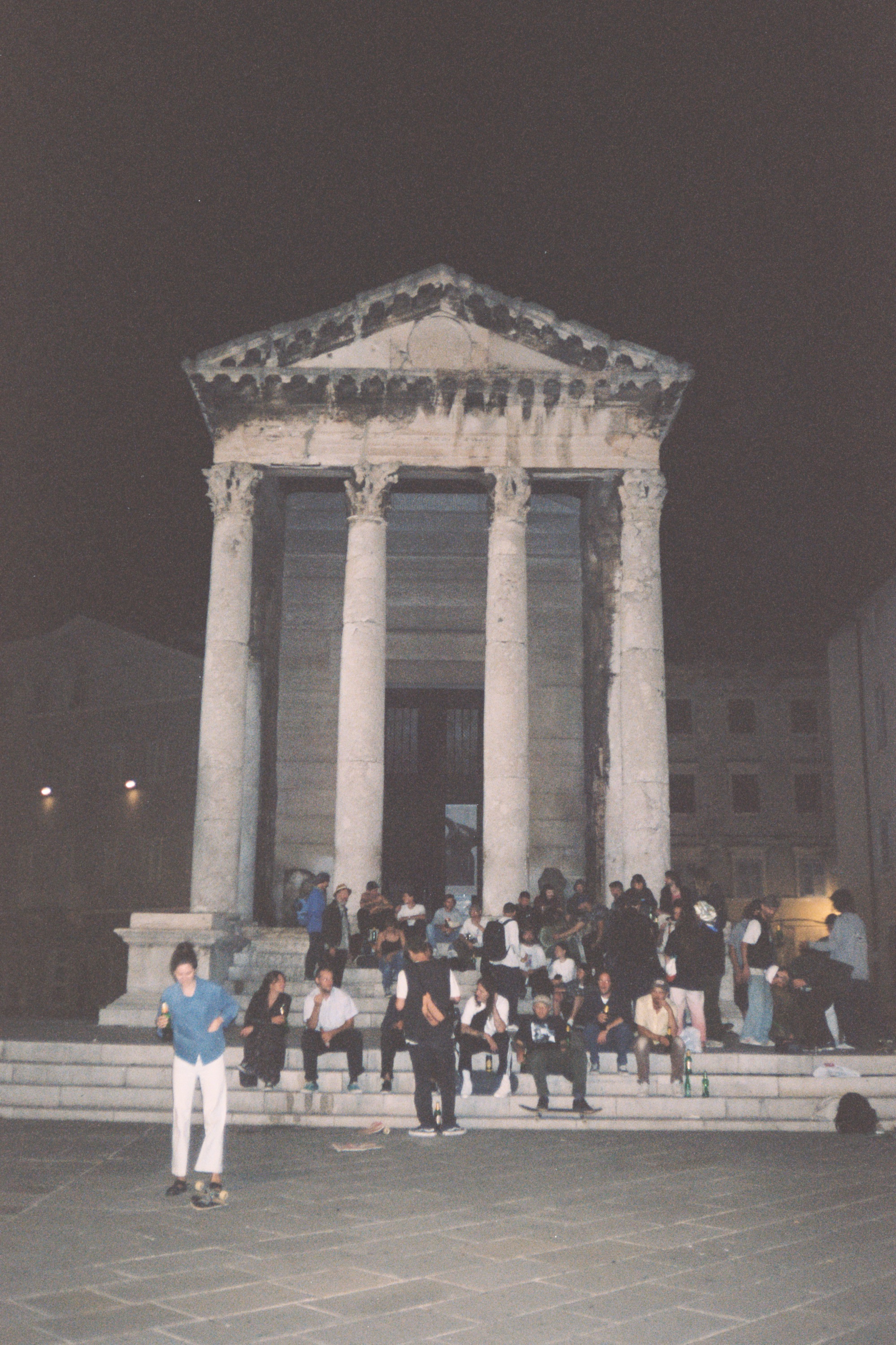 Those things are amazing, but they fall in the in-between. The point of this whole event is to share skateboarding and all that comes with it. Every night you’ll be treated to a selection of photos, zines, and of course films, from all across the spectrum. Paintings by Brian Lotti hang next to Jordan Hills double exposures prints and stacks of his zine. Nez Pez makes plans for your tattoo while you flip through Peter Fettich’s book on Slovenian DIY, listening to Daniel Lebron perform a flamenco concert in the old square of Fazana. Some of the films were documentaries, covering a rural town in France and their fight for their first skatepark, or a skate school for middle eastern refugees in Sweden. There were also local Croatian videos, animations, crew montages ranging from English homies in the Pacific Northwest, to Russian homies road tripping through Eastern Europe. I haven’t watched that much skateboarding in a very long time, yet I never got bored. Imagine going to a premiere for your homies video and it lasts for four days. Everyone was hyped and cheering whether it was the last film of the night or the first. Magic.